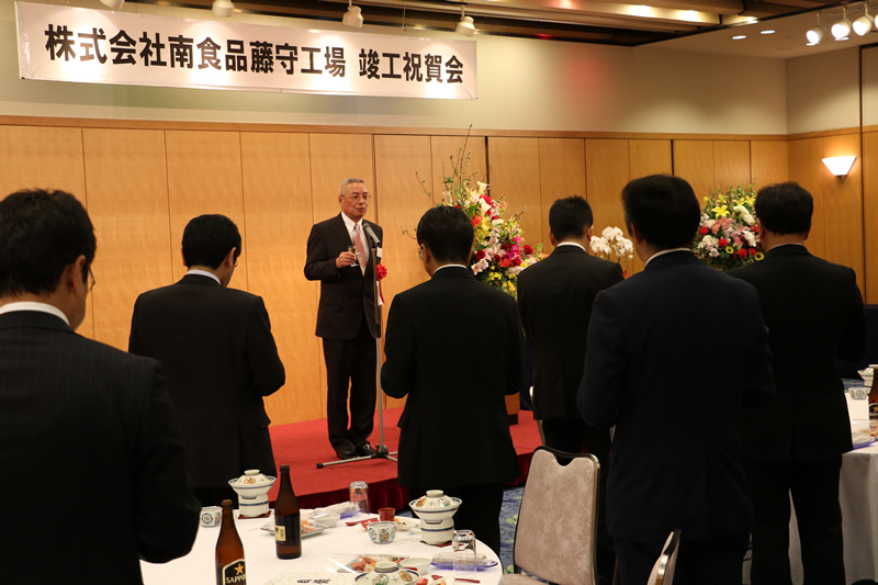 来賓の松岡昭郎株式会社商工組合中央金庫静岡支店長様からは、「非常に環境に配慮した最新鋭の工場である。焼津の地場産業は水産加工業で、地域経済の底上げに必ずやひと役買っていただけると信じている」と、新工場の完成を祝していただきました。